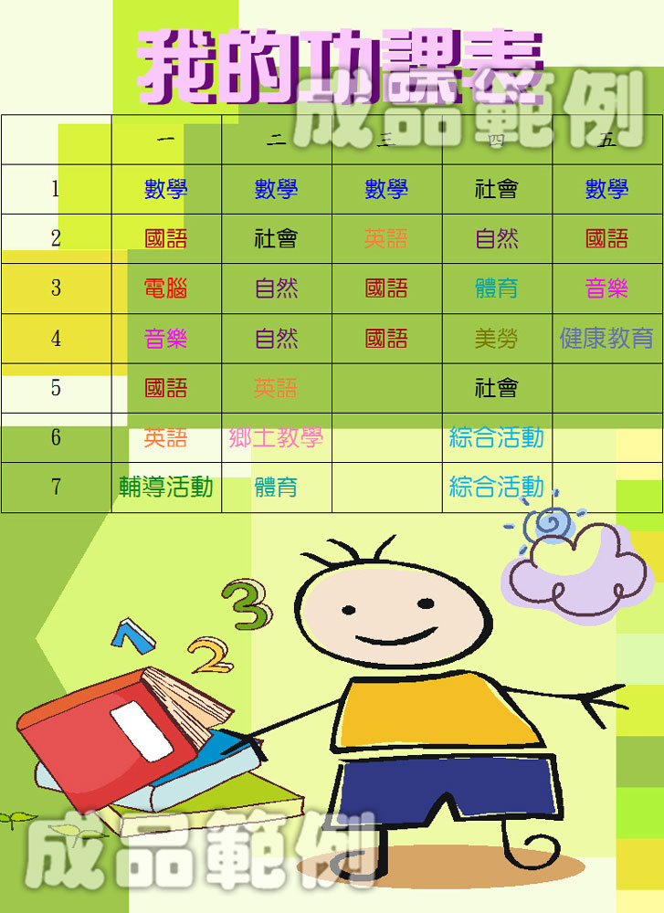 填入彩色的課表內容